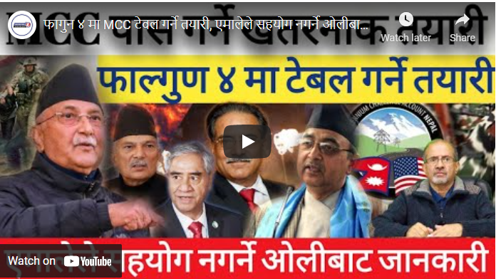 Videoराजनीति समाचार फागुन ४ मा MCC टेवल गर्ने तयारी, एमालेले सहयोग नगर्ने ओलीबाट जानकारी !-Nimkant Pandey February 14, 2022 168 Facebook Twitter Google+ Pinterest WhatsApp Share this: Share on X (Opens in new window) X Share on Facebook (Opens in new window) Facebook