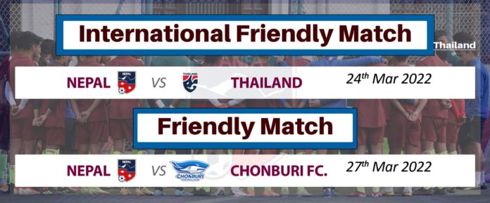 काठमाडाैं । नेपाली राष्ट्रिय फुटबल टिमले थाइल्यान्डसँग अन्तर्राष्ट्रिय मैत्रीपूर्ण खेल खेल्ने भएको छ। अखिल नेपाल फुटबल संघ (एन्फा) का अनुसार नेपालले चैत दोस्रो साता थाइल्यान्डसँग मैत्रीपूर्ण खेल खेल्ने पक्का भएको हो। खेल मार्च २४ (चैत १०) मा थाइल्यान्डको चोन बुरीमा हुनेछ। त्यसपछि नेपालले मार्च २७ मा स्थानीय टिमसँग प्रतिस्पर्धा गर्ने एन्फाले जनाएको छ। स्थानीय चोन बुरी एफसीसँग नेपालले प्रतिस्पर्धा गर्नेछ।