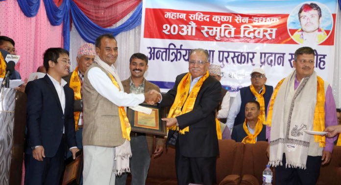 इच्छुकको २० औं स्मृति दिवसको अवसरमा काठमाडौंको बुद्धनगरमा शुक्रबार बिहान आयोजित अन्तरक्रिया तथा पुरस्कार प्रदान समारोहमा पुरस्कृत पत्रकारहरुलाई नेकपा (माओवादी केन्द्र) का अध्यक्ष प्रचण्डले सम्मान पत्रसहित दोसल्ला ओढाएर सम्मान गर्नुभएको थियो।
