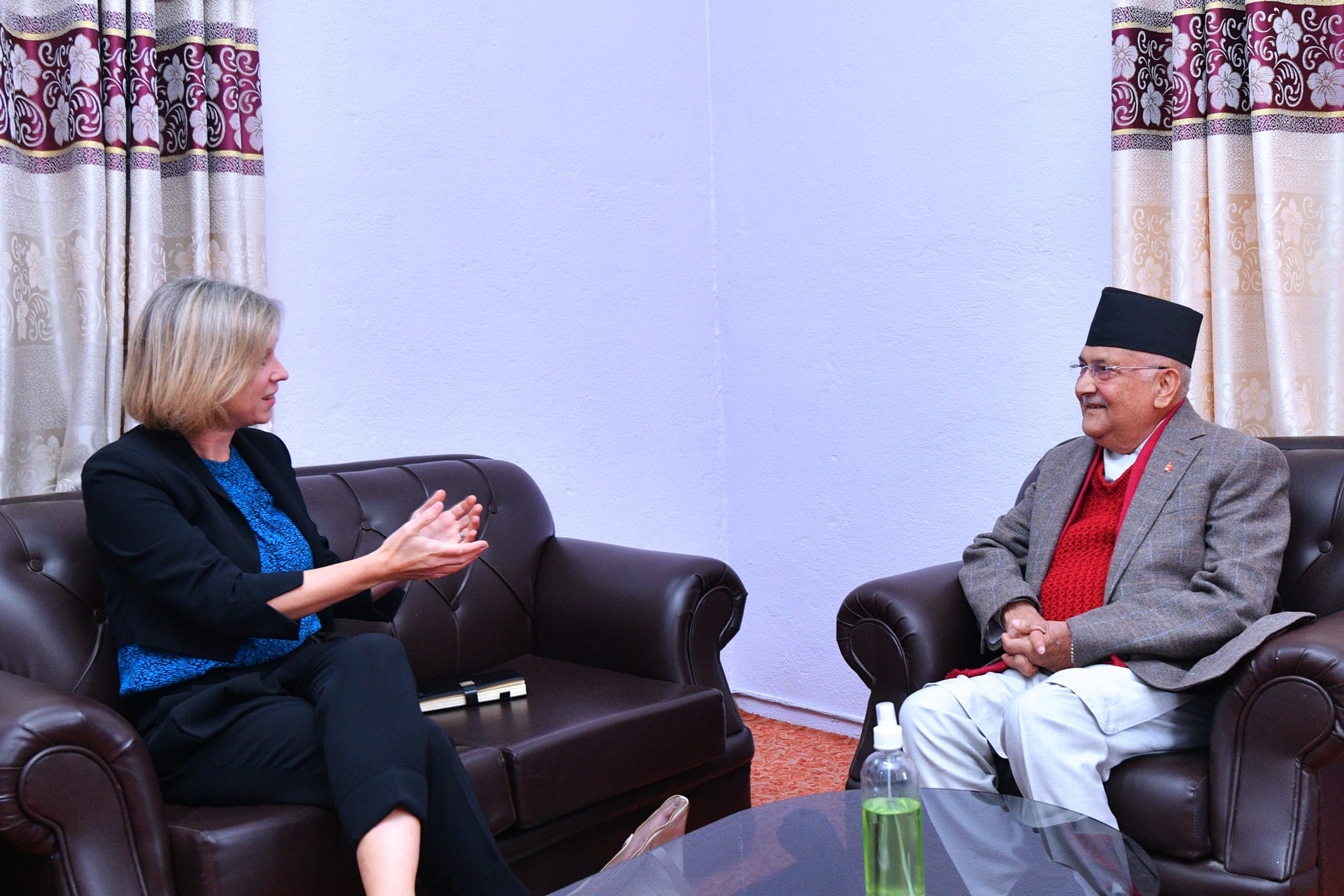 ओलीलाई भेट्न राजदूत निकोला बुधबार दिउँसो एमाले संसदीय दलको कार्यालय सिंहदरबार पुगेकी थिइन्।