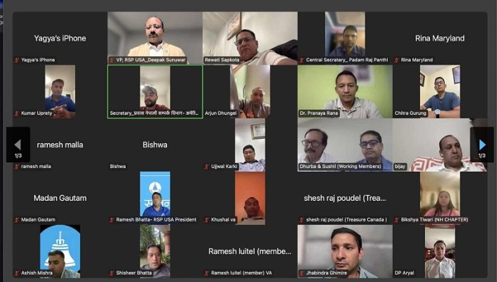 अमेरिका । प्रवासमा रहेका रास्वपा समर्थकहरूको संगठित अभियानअन्तर्गत, अमेरिकाभर नवगठित ९ वटा राज्य समितिहरूको औपचारिक घोषणा तथा सामूहिक सपथ ग्रहण कार्यक्रम भर्चुअल माध्यमबाट सम्पन्न भएको छ ।