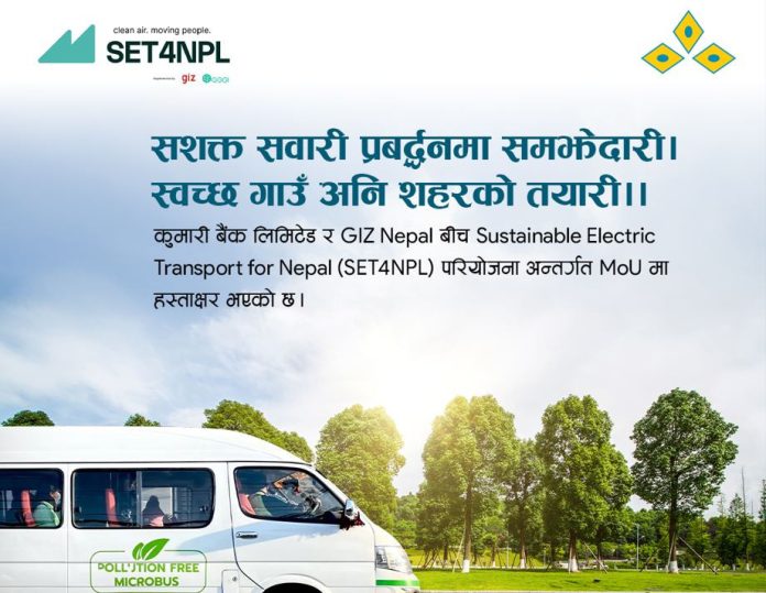 काठमाडौं । नेपालमा विद्युतीय गतिशीलतालाई सुदृढ बनाउनका लागि कुमारी बैंक लिमिटेड र (जीआईजेड) गेसेलशाफ्ट फर इन्टरनेस्नल जुसमेनारबिटबीच नेपालको लागि दिगो विद्युतीय यातायात (एसईटी४एनपीएल) परियोजनाअन्तर्गत एमओयूमा हस्ताक्षर भएको छ ।