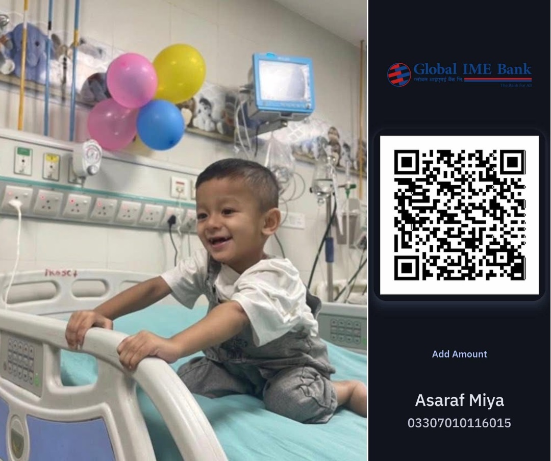 काठमाडौं । पाल्पा जिल्लाको रामपुर नगरपालिका–४ निवासी असरफ मियाँ र आसिया खातुनका तीन वर्षका छोरा फैजान खान दुर्लभ गौचर रोग (Gaucher Disease) बाट पीडित छन्। हाल उनको उपचार भारतको अखिल भारतीय आयुर्विज्ञान संस्थान, नयाँ दिल्लीमा भइरहेको छ। चिकित्सकहरूले उनको बोन म्यारो ट्रान्सप्लान्ट गर्नुपर्ने बताएका छन्, जुन अत्यन्तै जटिल र महँगो प्रक्रिया हो। नेपालमा यस्तो उपचार सुविधा उपलब्ध नभएकाले भारतमा उपचार गर्नुपरेको हो।