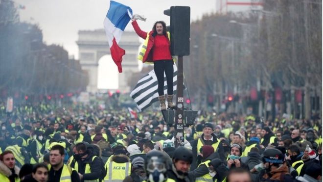 पेरिसमा गत दुई हप्तादेखि प्रत्येक हप्ताको अन्त्यमा विरोध प्रदर्शन भइरहेको छ । पेरिसको शान्ज एलिजे इलाकाको संवेदनशील स्थानमा पुलिसले बनाएको ब्यारिकेड तोड्ने प्रयासका बीच केही प्रदर्शनकारीबीच झडप भएपछि स्थिती तनावग्रस्त बनेको थियो । प्रदर्शनकारीले थुप्रै गाडीमा आगलागीसमेत गरेका छन् । हज्जारौं प्रदर्शनकारीको नियन्त्रणका लागि तीन हजार पुलिस तैनाथ गरिएको थियो ।