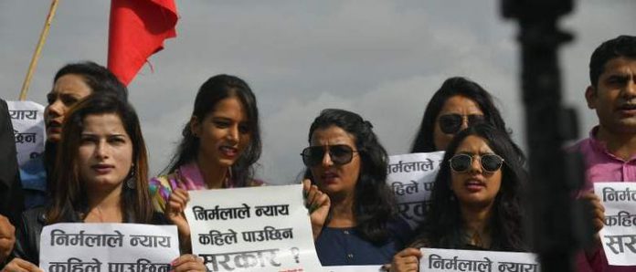 एक वर्ष सम्म पनि सरकारले दोषी पत्ता लगाउन नसकेको भन्दै नेविसंघले शुक्रबार राजधानीको माईतीघर मण्डलामा प्रर्दशन गरेको हो। ‘निर्मलाले न्याय कहिले पाउँछिन् सरकार’ लेखिएको प्ले कार्ड बोकेका प्रर्दशनकारीले निर्मलाका हत्यारालाई पत्ता लगाउन नसकेको भन्दै गृहमन्त्री रामबहादुर थापाविरुद्ध नाराबाजी गरेका थिए।