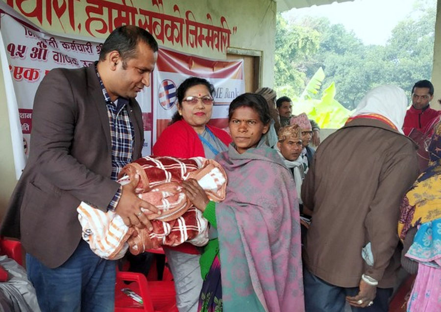 बैंकले आफ्नो संस्थागत सामाजिक उत्तरदायित्वअन्तर्गत निजामती कर्मचारी श्रीमती संघसँगको सहकार्यमा नवलपरासीको सुस्ताका विपन्न समुदायलाई जाडोमा ब्लाङ्केट वितरण गरेको हो ।