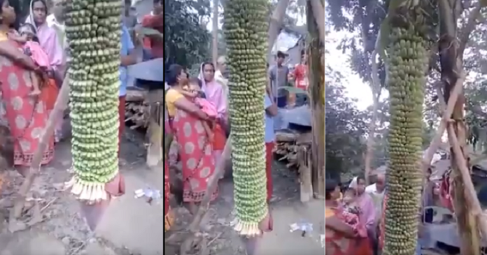 केराको घारीमा कोसा फल्दै जादा केराको बोड नै निहुरीएको छ । अझ केराको घारीले तल भेटेपछि खाल्टो समेत खनिएको छ । केरा हेर्दा अझै फुल लाग्नै लागेको देखिन्छ । यो अनौठो लाग्दो भिडियो शुशान्त नन्दाले सामाजिक सञ्जालमा शेयर गरेका छन् ।