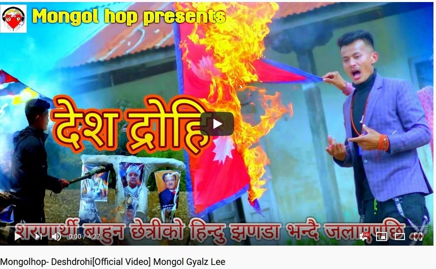 मकवानपुरमा सुट गरिएको सो म्यूजिक भिडियो सोमबार ‘मंगोल हप अफिसियल’ नामक युट्युव च्यानलबाट अपलोड गरिएको थियो । नेपालको झण्डा जलाएको दृश्य समावेश गरिएको सो भिडियोबारे सामाजिक संजालमा चर्को विरोध भएको छ । भिडियोमा क्षेत्री, बाहुन समुदायलाई अश्लिल गाली गरिएको छ ।  मुलुकी अपराध संहिता–०७४ अनुसार जात, जाति सम्प्रदाय वा बर्गको भावनामा आघात पर्र्याउन पाइँदैन । त्यस्तै राष्ट्रिय झण्डाको अपमान वा क्षति गरेमा तीन बर्षसम्म कैद वा तीस हजार जरिवाना हुने कानुनी ब्यवस्था छ ।
