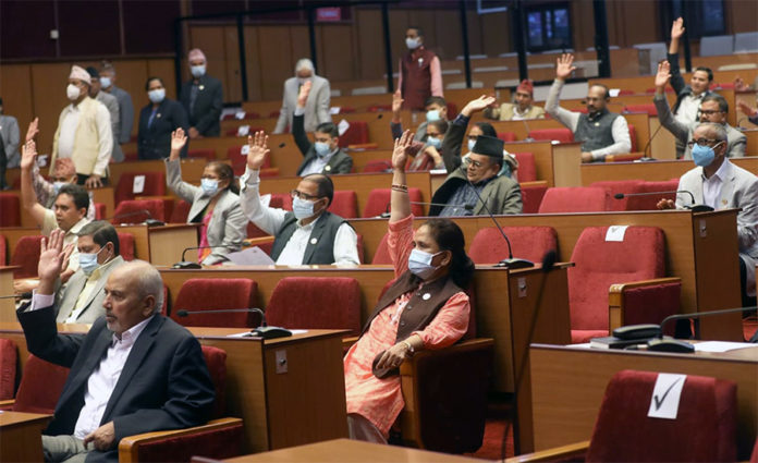 एमालेकै अवरोधका बीच अगाडि बढाउन राम्रो नलागेको भन्दै उनले बस्न आग्रह गरे । तर एमाले सांसदहरु आ-आफ्नो स्थानमा उभिरहेपछि उनले बैठक अघि बढाए । बैठकमा अर्थमन्त्री जनादर्न शर्मा प्रभाकरले प्रतिनिधिसभाबाट सन्देशसहित प्राप्त आर्थिक विधेयक २०७८ र राष्ट्र ऋण उठाउने विधयेक २०७८ माथि विचार गरियोस् भन्ने प्रस्ताव पेश गरे । दुवै प्रस्ताव बहुमतले पास भयो । दुवै विधेयकमाथि दफावार छलफलका लागि ११ गते बैठक तोकिएको सभाअध्यक्षले जानकारी गराए ।