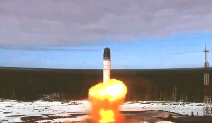 काठमाडौं । रूसले आणविक क्षमताको मिसाइलको परीक्षण गरेको छ। समाचार संस्था रोयटर्सका अनुसार रूसी रक्षा मन्त्रालयले बुधबार सरमात नामक मिसाइल परीक्षणको भिडिओ सार्वजनिक गरेको छ। उक्त भिडिओमा रूसी सैनिक अधिकारीहरूले राष्ट्रपति भ्लादिमिर पुटिनलाई मिसाइलबारे ब्रिफिङ गरिरहेको देखिन्छ।