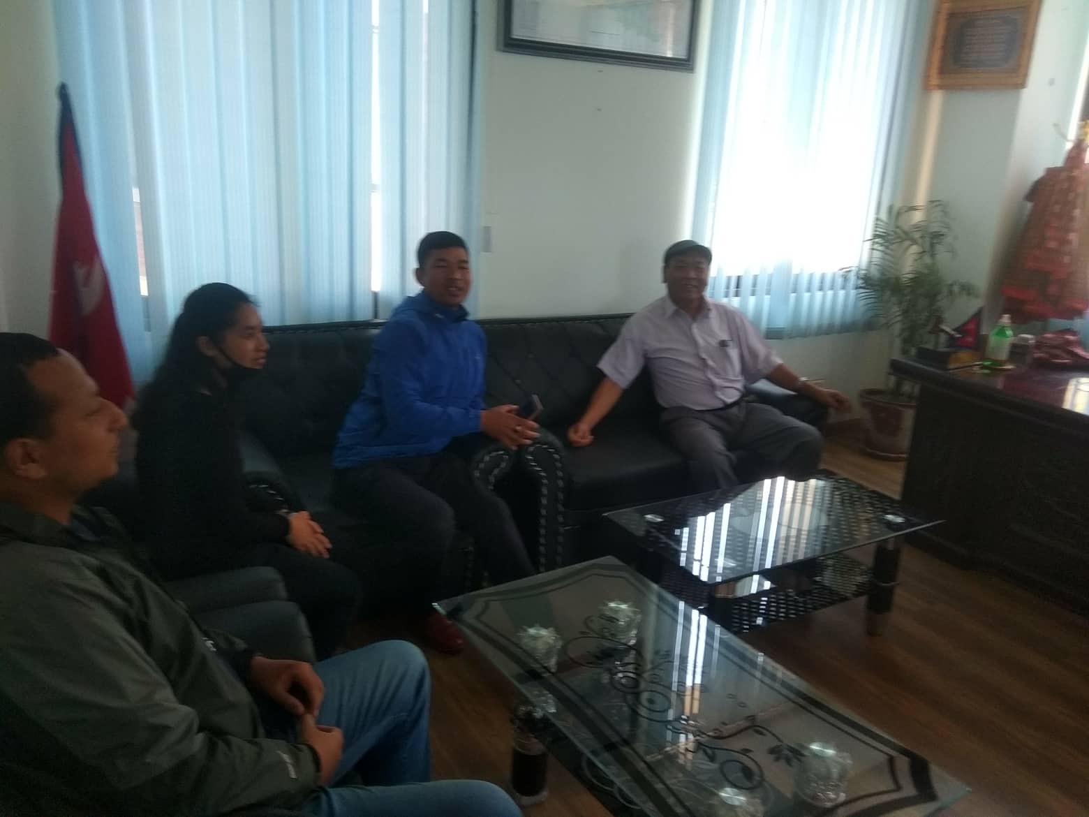 नेवाः विध्यार्थी युनियनका अध्यक्ष रीदेन महर्जन, सचिव प्रशान्त डंगोल, सदस्यहरु मनिष मानव, बिक्किराज महर्जन, रुपा शाही तथा रत्न राज्यलक्ष्मी क्याम्पसका नेपाल भाषा शिक्षक प्रो.डा. चन्द्रमान बर्जाचार्यले सामुहिकमा कीर्तिपुर नगरपालिकामा नवनिर्वाचित मेयर राजकुमार नकर्मी उपमेयर शुभ लक्ष्मी शाक्य (सुनिता)लाई भेटेर पाँच बर्षे कार्यकाल सफलताकाे शुभकामना तथा बढाई दिएका थिए ।