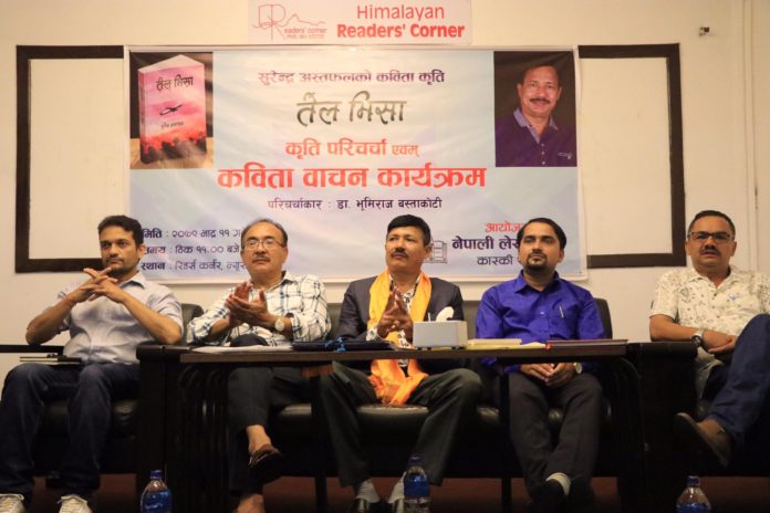 पाेखरा । नेपाली लेखक संघ, कास्कीले कवि सुरेन्द्र अस्तफलको कवितासङ्ग्रह तेल भिसामाथि परिचर्चा गरिएको छ। शनिबार पोखरामा आयोजित कार्यक्रममा समालोचक डा.भूमिराज बस्ताकोटीले उक्त कृतिमाथिको परिचर्चा गरे।