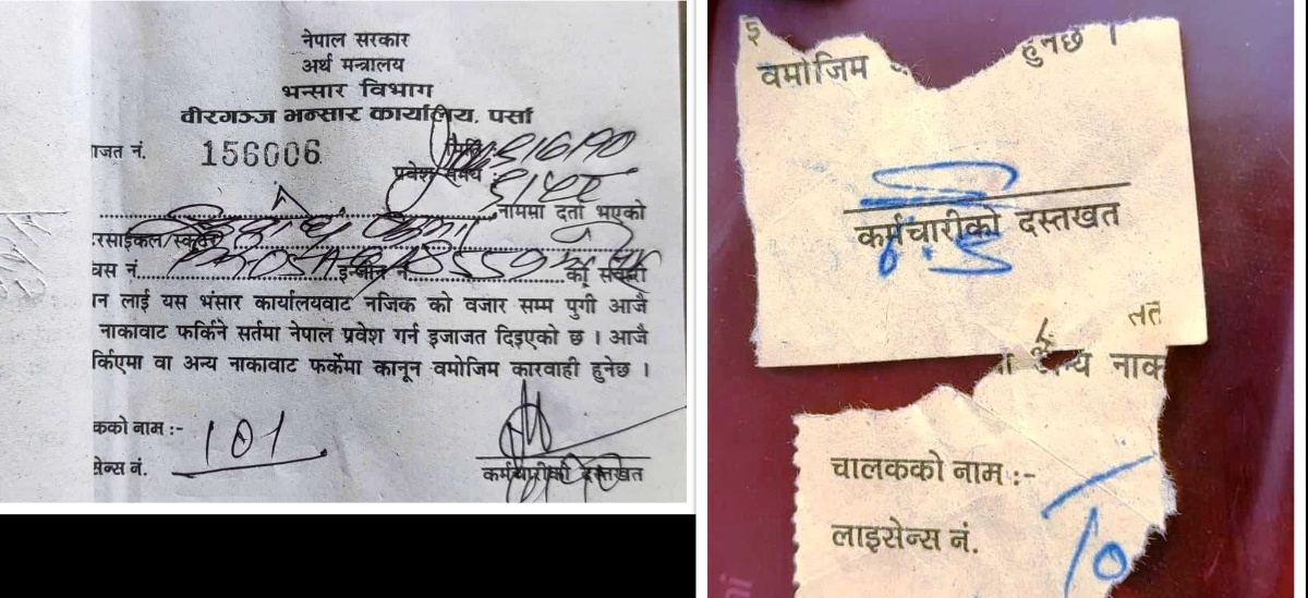 यता प्रहरी चौकी तेलकुअवाका प्रहरी सहायक निरीक्षक रामबहादुर यादवले आफूले कागज नच्यातेको बताउनुभयो । कात्तिक १० गते बिहान ९ः५८ बजे विआर ०५–एइ–८५५९ नम्बरको मोटरसाइकल भन्सार प्रवेश भएको मटिअर्वा छोटी भन्सारका कार्यालय सहयोगी प्रकाश साहले जानकारी दिनुभयो । शिव मिश्र गाेरखापत्र