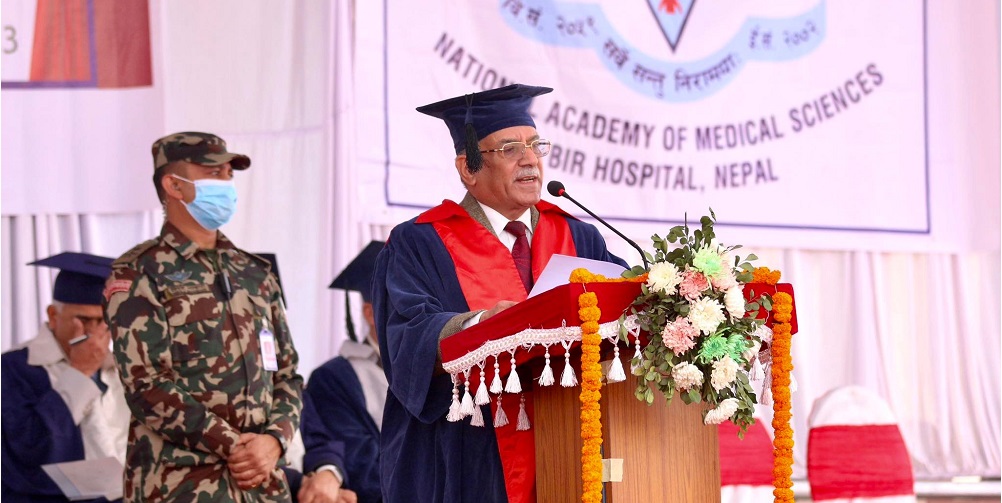 यसका लागि सबैको सहयोग र प्रतिबद्धता प्राप्त हुने उनले विश्वास व्यक्त गरे। चिकित्सा विज्ञान राष्ट्रिय प्रतिष्ठानको तेस्रो दीक्षान्त समारोहलाई सम्बोधन गर्दै प्रधानमन्त्रीले आगामी दिनमा प्रतिष्ठानले दक्ष प्राविधिक जनशक्तिको उत्पादन, प्रभावकारी सेवा प्रवाह र राष्ट्रिय आवश्यकताको सम्बोधन हुने गरी अनुसन्धानका कामलाई अगाडि बढाउन निर्देशन दिए।