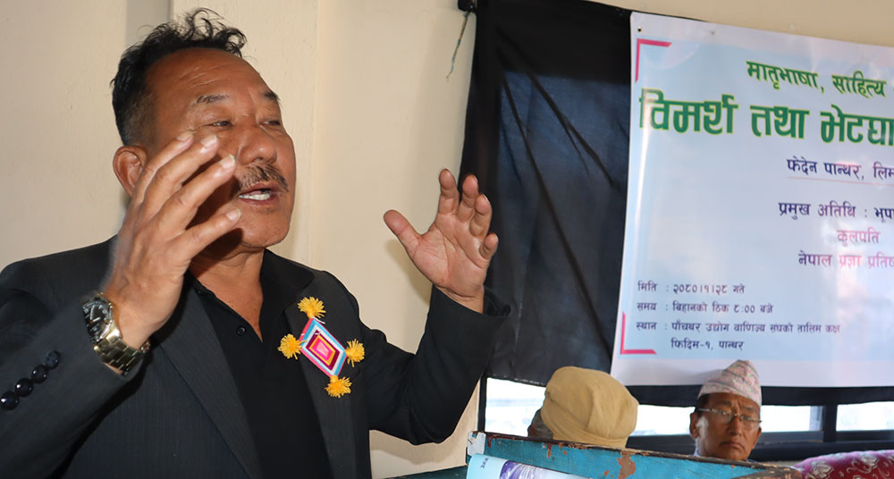 पाँचथरको सदरमुकाम फिदिममा बिहीबार याक्थुङ प्रज्ञा प्रतिष्ठान र नौलो साहित्यिक बिहान प्रतिष्ठानले आयोजना गरेको मातृ भाषाको संरक्षणमा सरोकारवालाको भूमिका विषयक छलफल कार्यक्रमलाई सम्बोधन गर्दै उहाँले यस्तो बताउनुभएको हो। नेपालमा बसोबास गर्ने सबै जातजातिका मातृ भाषालाई आर्थिक आर्जनसँग जोड्नुपर्ने उहाँको भनाइ छ।
