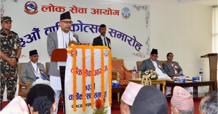 लोकसेवा आयोगको ७३औँ वार्षिक समारोहलाई सम्बोधन गर्नुहुँदै उहाँले निजामती सेवाका पदको नियुक्तिका लागि उपयुक्त उम्मेदवार छनोट गर्ने र सो पदबाहेक नेपाली सेना, नेपाल प्रहरी, सशस्त्र प्रहरी बल र अन्य सङ्घीय सरकारी सेवा र सङ्गठित संस्थाको पदपूर्तिका लागि लिखित परीक्षा सञ्चालन गर्ने आयोगको जिम्मेवारी सन्तोजनक रहेकाले सेवालाई थप प्रभावकारी बनाउन आग्रह गर्नुभएको हो ।