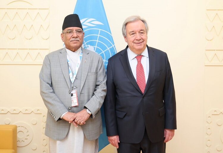 काठमाडौं । प्रधानमन्त्री पुष्पकमल दाहाल ‘प्रचण्ड’ र संयुक्त राष्ट्रसंघका महासचिव एन्टोनियो गुटेर्रेसबीच भेट भएको छ ।