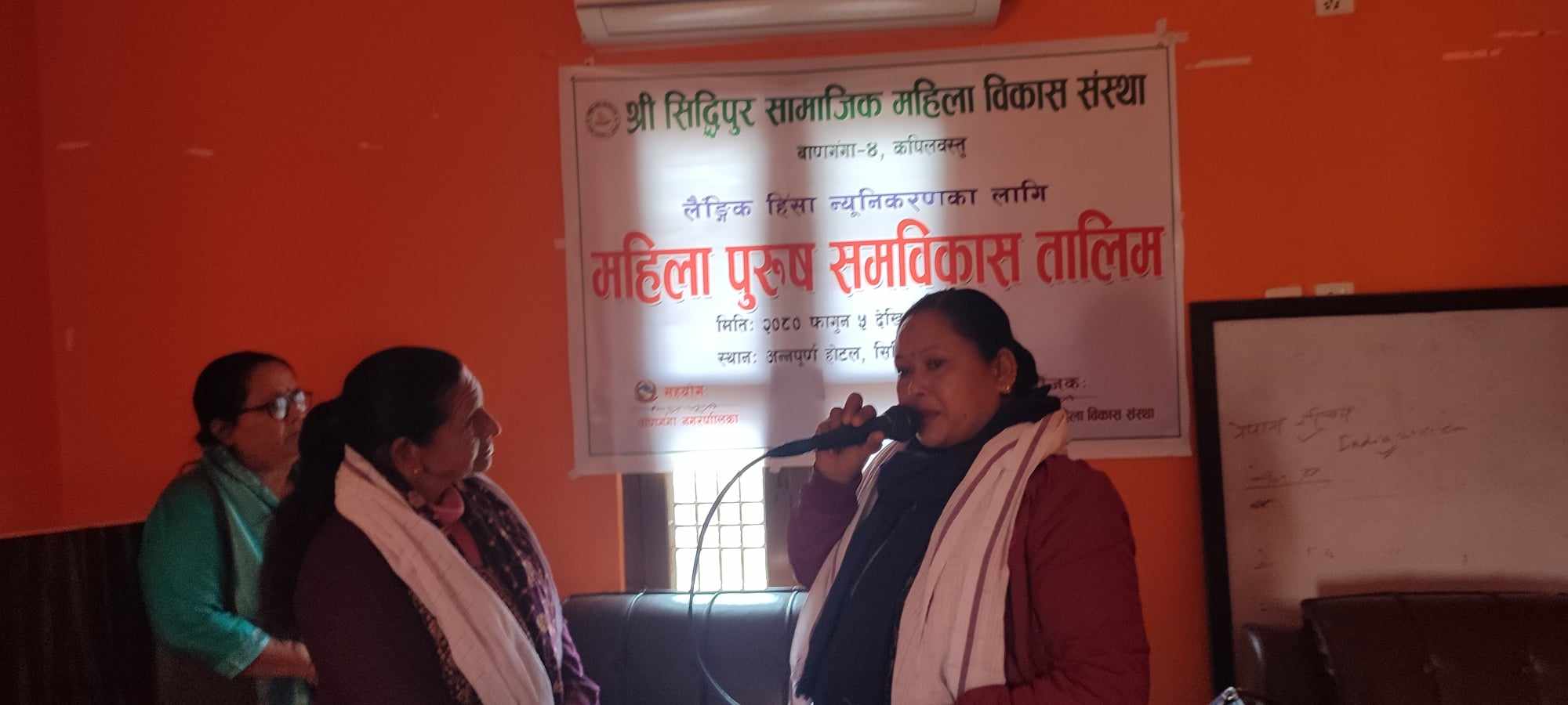 श्री सिद्धिपुर सामाजिक महिला विकास संस्था बाणगंगा ४ को आयोजना तथा बाणगंगा नगरपालिकाको सहयोगमा लैगिंक हिंसा न्युनिकरण गर्ने उद्देश्यले महिला पुरुष समविकास ६ दिने तालिम आज उद्घाटन गरिएको हो ।