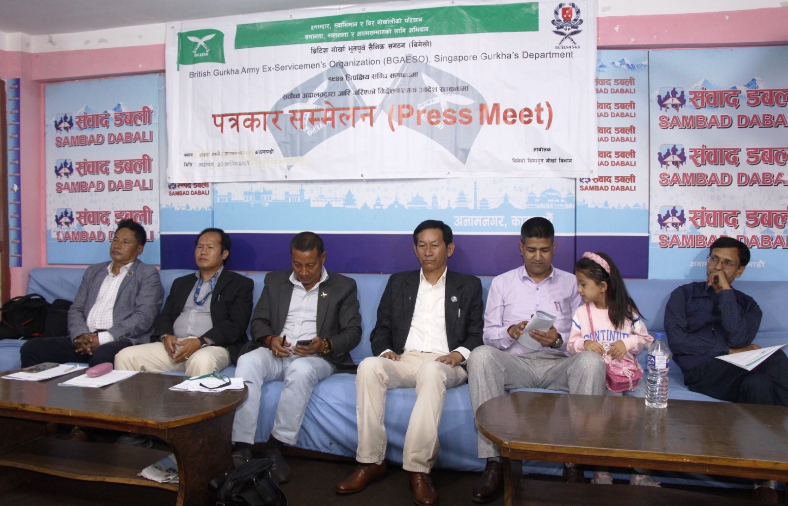 काठमाडौं । ब्रिटिश गोर्खा भूतपूर्व सैनिक संगठन (बिगेसो) ले सर्वोच्च अदालतको फैसला कार्यान्वयन नगरे अन्तर्राष्ट्रिय निकायमा जाने सरकारलाई चेतावनी दिएको छ । आइतबार काठमाडौंको संवाद डबलीमा पत्रकार सम्मेलनको आयोजना गरेर बिगेसोले दसैं–तिहारपछि देशैभरि आन्दोलन गर्ने घोषणा समेत गरेको छ ।