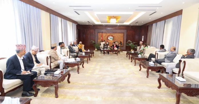 काठमाडौँं । प्रधानमन्त्री केपी शर्मा ओलीको आह्वानमा सत्तापक्षीय राजनीतिक दलको बैठक जारी रहेको छ ।यही वैशाख १९ गते सङ्घीय संसदको दुवै सदनमा राष्ट्रपति रामचन्द्र पौडेलबाट प्रस्तुत हुने नेपाल सरकारको आगामी आर्थिक वर्षको नीति तथा कार्यक्रमको तयारीलगायत विषयमा छलफल केन्द्रित रहेको छ ।