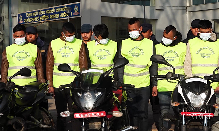 प्रहरीले काभ्रेपलाञ्चोकका २३ वर्षीय विनय, २० वर्षीय सलोन तामाङ, १८ वर्षीय राजीव भण्डारी र २९ वर्षीय पेमा तामाङ, सिन्धुलीका २४ वर्षीय आयन माझी र ३२ वर्षीय सविन माझी, मोरङका २३ वर्षीय मनिस रसाइली, रामेछापका २२ वर्षीय विशाल तामाङ, खोटाङका २८ वर्षीय विदुर विश्वकर्मा र सिन्धुपाल्चोकका २९ वर्षीय फुर्वा तामाङलाई पक्राउ गरेको हो । उनीहरुका साथबाट बा १२ च ७७०१ नम्बरको कार र बागमती प्रदेश ०१०० ज ८७६६ नम्बरको ट्याक्सी तथा ६ थान मोटरसाइकल बरामद गरेको छ । उनीहरुलाई पक्राउ गर्न प्रहरीले बुधबार साँझ ६ देखि आज बिहान ३ बजेसम्म ‘अप्रेशन’ चलाएको थियो ।